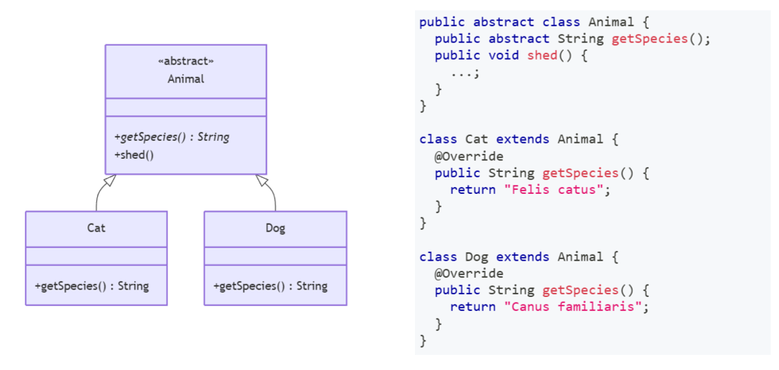 - Dynamic dispatch: runtime type determines which method runs