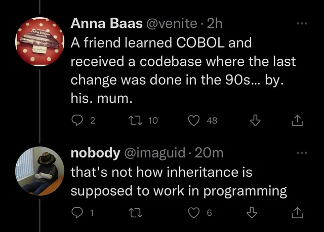 Subclasses inherit the code from their superclasses.