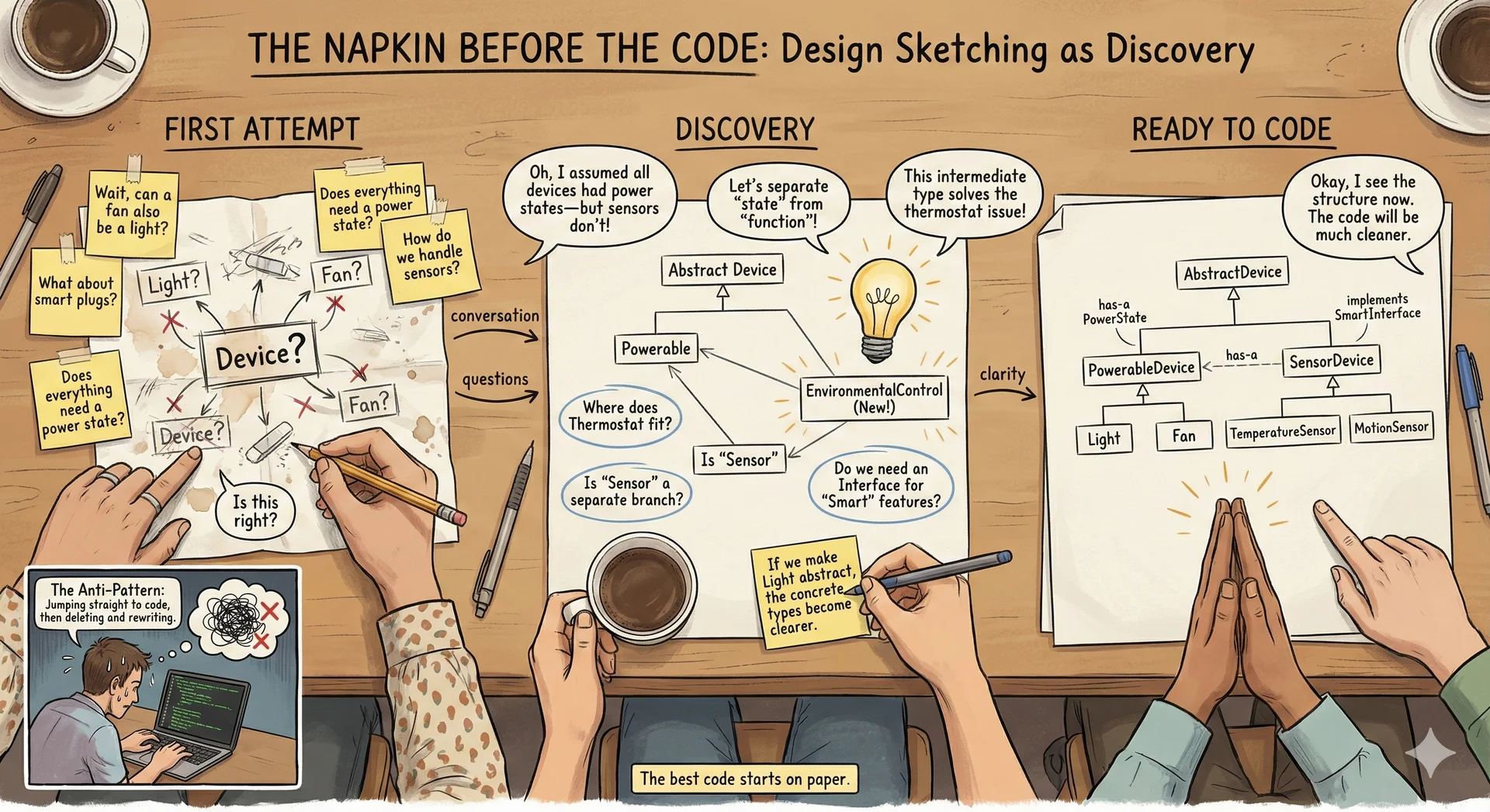 identify()— help a human find the device (e.g., flash a light, wiggle a shade or fan)isAvailable()— check if the device is reachable