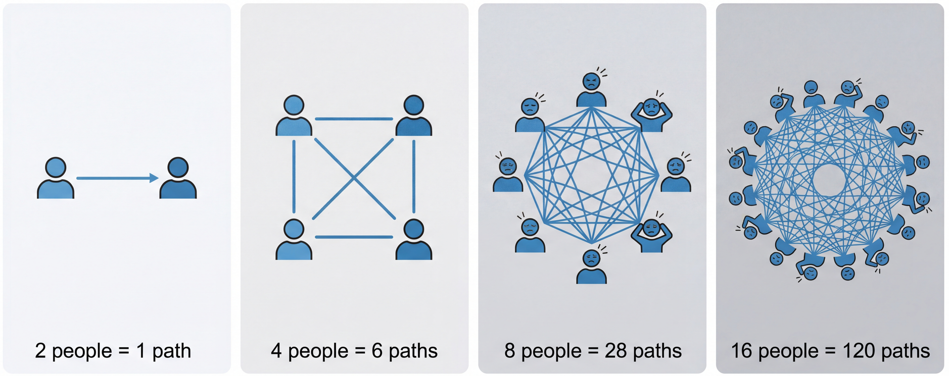 Brooks' Law: Communication Overhead Grows Quadratically