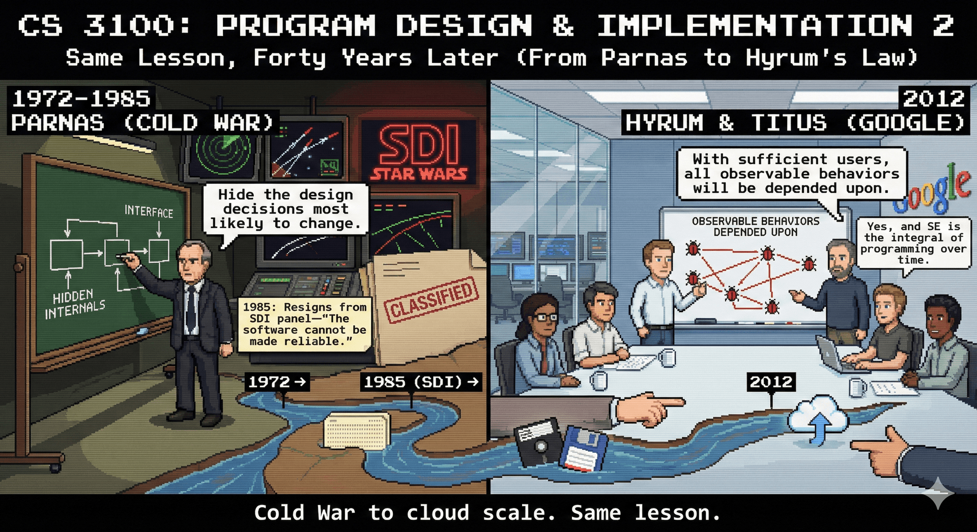 David Parnas proposed information hiding in 1972 — before most programming languages supported it.