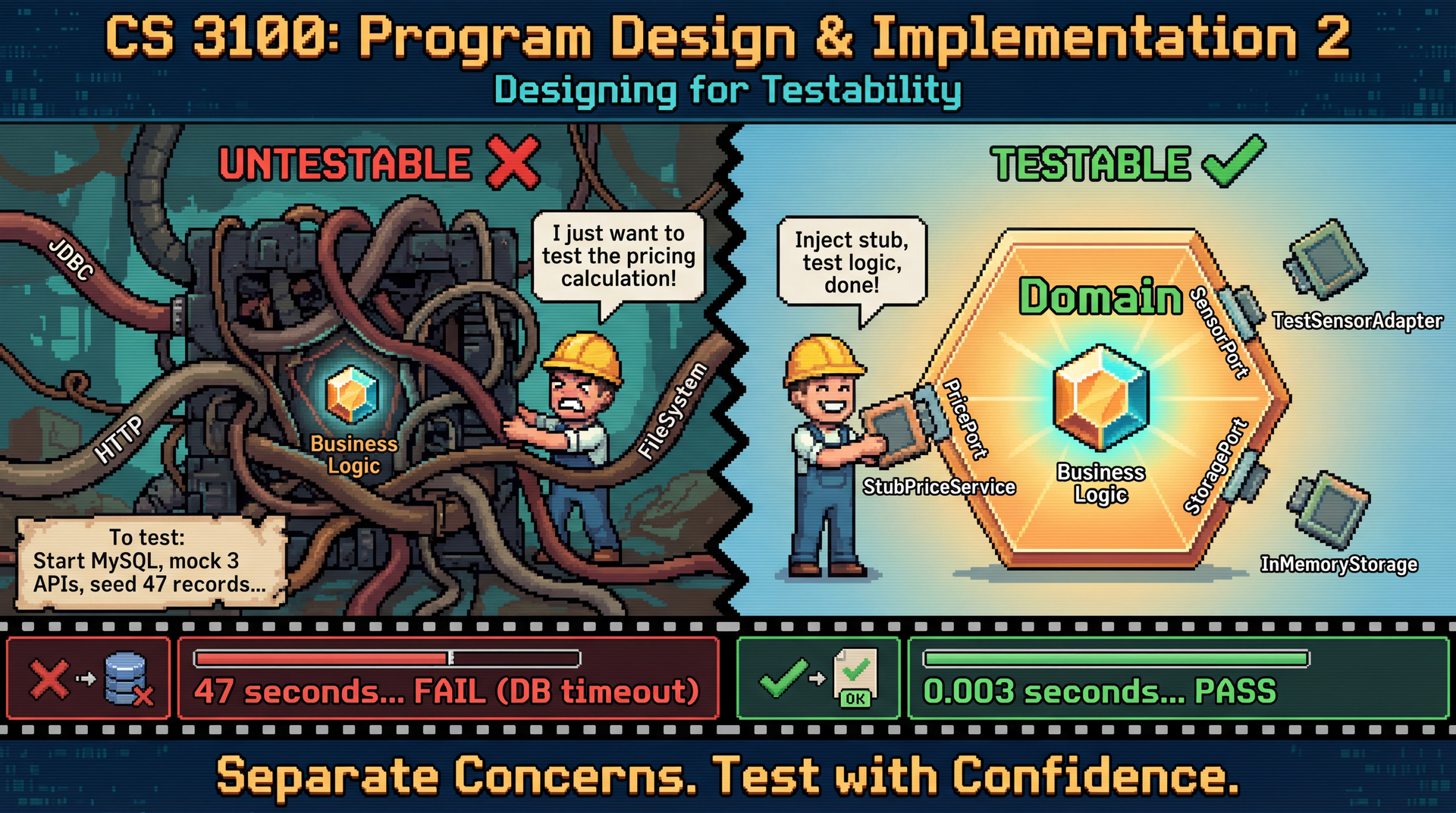 - Recognize anti-patterns that lead to untestable code and how to fix them